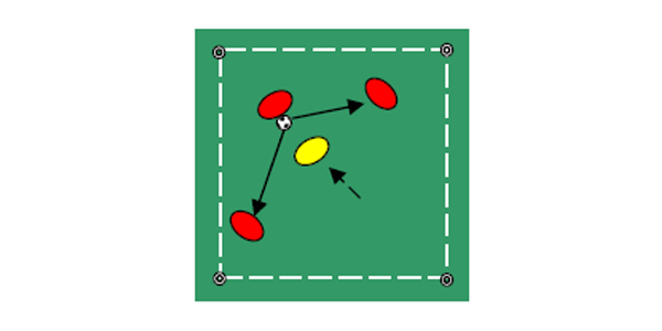Tre giocatori in possesso palla libero in un quadrato 15 x 15 m.